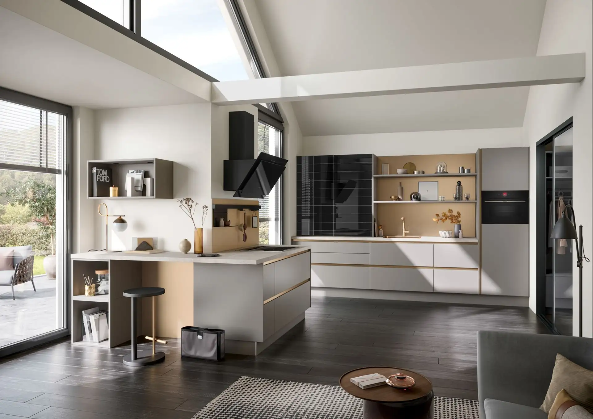 Was die Inselküche auszeichnet: Zusätzlicher Stauraum, großzügige Arbeitsfläche und die Möglichkeit, eine Sitzgelegenheit zu integrieren. Ob als Kochfeld-Insel mit integriertem Abzug, als Spülinsel oder als reiner Vorbereitungsbereich – die Gestaltungsmöglichkeiten sind vielfältig. Generell erzeugen Inselküchen eine kommunikative Atmosphäre, in der Kochen und Geselligkeit Hand in Hand gehen.